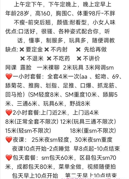 服务项目: 洗澡 全套sm 舔脚 毒龙 舌吻 吞精 舔脚 三通